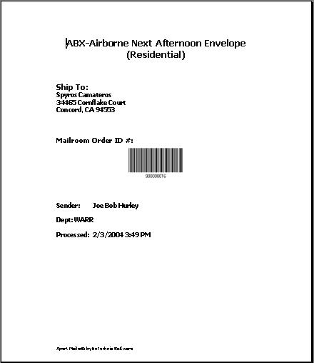 Xpert MailerAn Express Document preparation tool for users of Microsoft Word and Excel (2000 version)The Xpert Mailer is an application that uses our Patent Pending process to allow the Add-in function of Microsoft Office 2000 and XP to access a minimized version of the Xpert Rater. It allows anyone working within one of the MS Office suite of applications to quickly assess the costs and choose between the options available to them to send the document via an Express Carrier such as Airborne, DHL, FedEx, UPS, or the USPS. The Xpert Mailer creates an XML transaction to the Rating Engine running on the Tranfinity Server platform, and displays the results to the user in a simple-to-understand menu, sorted by delivery level and then carrier fee. The ultra-fast rating process provided by the Xpert Rater allows multiple users in an office to simultaneously access rates using the Xpert Mailer without experiencing a slowdown at each desktop. Once a user has selected a service level to send their document, data specific to the transaction is updated to a Microsoft Access data table. This data is matched to an ID printed on the Mailroom Order document, which is automatically generated. Attaching the Mailroom Order allows the user's document to be sent to the Mailroom, where it can be placed in the proper packaging, and sent via the selected carrier. All information is printed on the Mailroom Order, allowing a Mail Clerk to either enter the address into a system manually, or scan the bar-coded ID to allow an integrated system to capture the data from the Access Database. This automation will eliminate the potential errors of manual typing as well as save time, reducing the usual "crunch" that hits most mailrooms in the afternoon. Future additions to the Xpert Mailer are automatic address validation and correction using API calls to separate software packages, available from many Independent Mailing Equipment Dealers, as well as the capability to access Carrier web-based shipping functions, so that authorized users can send documents from their desktop without taking any time from a busy Mail Clerk. The Xpert Mailer supports billing by Department, Client/Matter, as well as additional data fields to allow detailed cost tracking to be performed. Users can be controlled as to the services for which they may generate a Mailroom Order (i.e. Non-authorized users will not be able to ship, for example, "Next Day", if the highest level of service they are granted is "Two Day"). Carriers may be eliminated from the selections, to allow for tailoring to the actual carriers utilized. Rates are supported for offices with Daily, or occasional carrier Pick-up. |